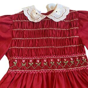 Vintage Polly Flinders Hand Smocked Floral Eyelet Peter Pan Collar Dress 5