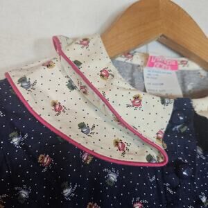 Vintage Polly Flinders Navy Blue Floral Print Smocked Dress in excellent condition. Ties at the waist.