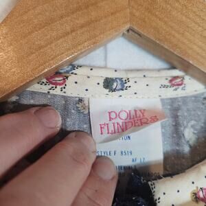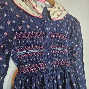Vintage Polly Flinders Navy Blue Floral Print Smocked Dress