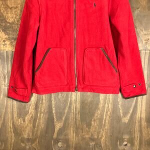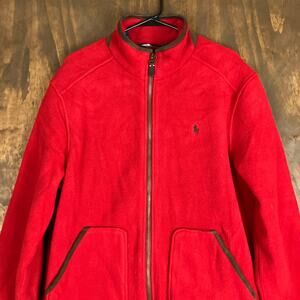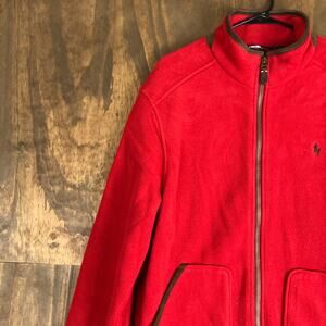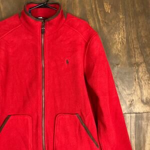 Vintage Polo By Ralph Lauren Mens Jacket Red Fleece Brown Leather Trim XL