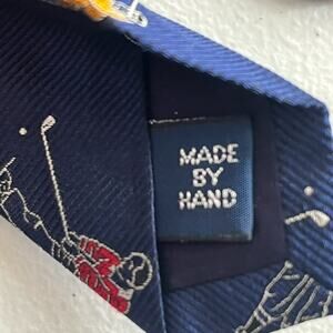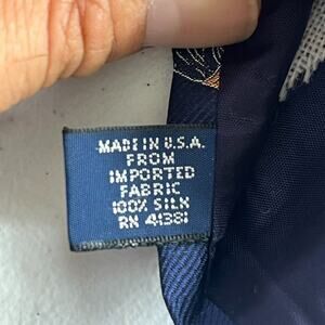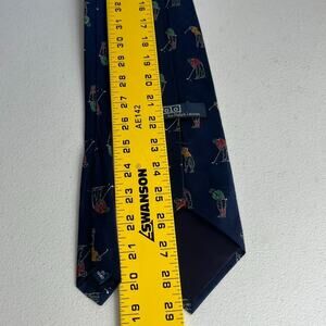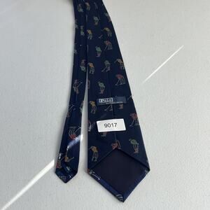 This Vintage Polo By Ralph Lauren Men's Tie with a Golfer Motif is a luxurious and stylish accessory for men. Made from 100% silk and handmade in the United States, this navy blue tie features a woven golfer motif design that exudes a retro, preppy style. With a classic design that includes the iconic Polo By Ralph Lauren logo, this tie is perfect for adding a touch of sophistication to any outfit, whether for a special occasion or a day out on the golf course. One size fits all, making it a versatile and timeless piece for any man's wardrobe.