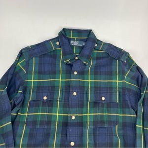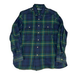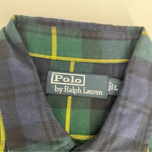 Vintage Polo By Ralph Lauren Shirt Mens Large Blue Green Flannel Plaid Oxford