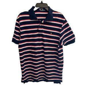 Vintage Polo By Ralph Lauren Striped Short Sleeve 1/4 Button Collared Sz L