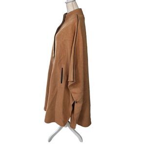 Vintage Polo Cloth By Stevens Wool Cape Coat With Leather Buttons & Trim Size L