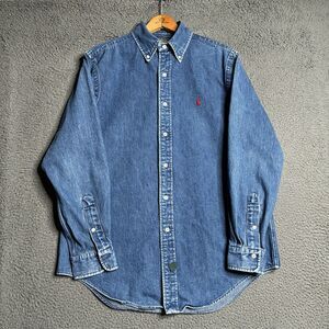 Vintage Polo Country Ralph Lauren Denim Shirt Mens Medium Western Cowboy