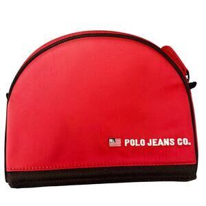 Here we have a vintage Polo Jeans Co. carry case in bright red, featuring the RL Polo Jeans Co. Logo with the embroidered flag on the front. Cute and sturdy case for weekender or carryng make-up. Measurements in pics.
