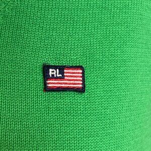 Vintage Polo Jeans Co Ralph Lauren Sweater Wm Sz XL Green American Flag Preppy Y2K Heritage Old Money