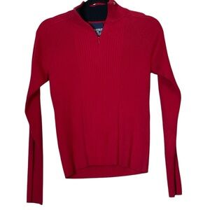 Vintage Polo Jeans Co Red Mock Neck 1/4 Zip Ribbed Sweater Medium Preppy READ