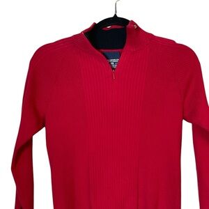 •Style Profile: Vintage Polo Jeans Co Red Mock Neck 1/4 Zip Ribbed Sweater Medium Preppy