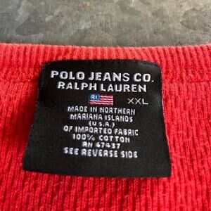 Vintage Polo Jeans Ralph Lauren Embroidered Thermal Shirt Mens XXL L/S Red USA