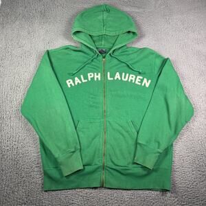 Vintage Polo Jeans Ralph Lauren Full Zip Hoodie Mens L Faded Green Boxy Y2K