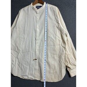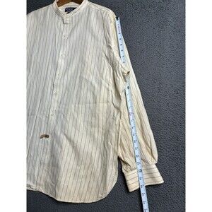 Vintage Polo Ralph Lauren Bernard Men's Large Ivory Striped Banded Collar Shirt