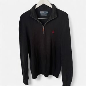 Vintage Polo Ralph Lauren Black Quarter Zip Up Pullover Sweater in Men’s Small