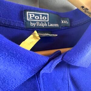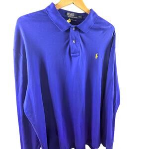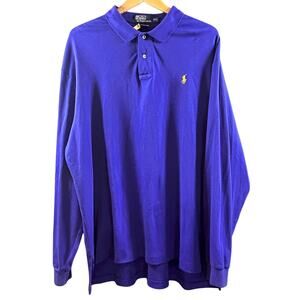 Polo Ralph Lauren, long sleeve polo, men’s XXL shirt, blue polo, yellow pony logo, classic fit, preppy style, Y2K men’s fashion, vintage Ralph Lauren, designer casual wear, Americana classic