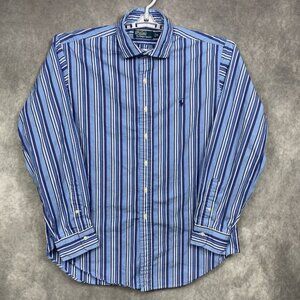 Vintage Polo Ralph Lauren Button Up Shirt Mens XL Blue Striped Preppy Casual