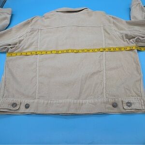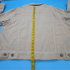This vintage Polo Ralph Lauren Corduroy Trucker Jacket in size XL features a classic fit and a cropped style, perfect for adding a unique touch to your wardrobe. Made from cotton corduroy in a solid beige color, this jacket is lightweight and versatile, making it suitable for all seasons. The button accents and vintage appeal make it a timeless piece. Ideal for men who appreciate quality and designer pieces with a touch of nostalgia. Excellent Condition -See Pictures - Very Clean
