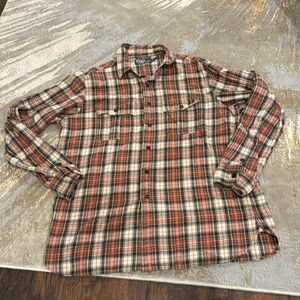 Vintage Polo Ralph Lauren Dark Orange plaid Flannel Button-Down Shirt size L EuC