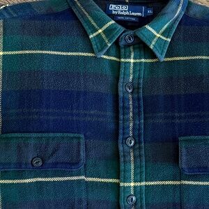 Vintage Polo Ralph Lauren Flannel Green Navy Plaid Shacket Button Shirt Men XL
