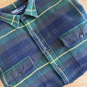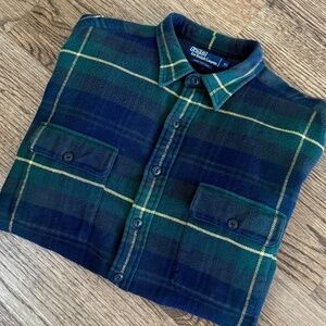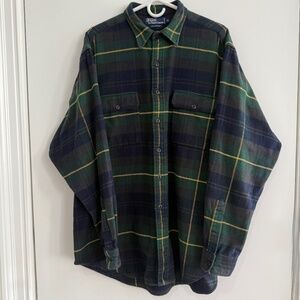 Vintage Polo by Ralph Lauren Green Navy Yellow Plaid Flannel Shacket Button Down Shirt Men's XL
