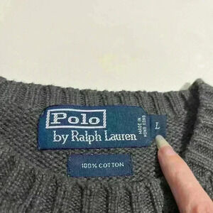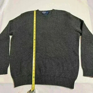 Vintage Polo By Ralph Lauren Gray Ribbed Cuffs And Hem Logo Crew Knit Pony 90s Sweater Mens Size Large