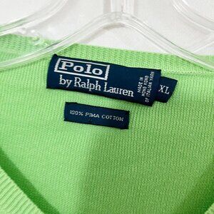 Vintage Polo Ralph Lauren Green & Blue V-Neck Sweater Pima Cotton Size XL
