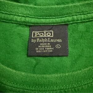 Vintage Polo Ralph Lauren Mens Large Green Yellow Pony Cotton Short Sleeve T Shirt in good used condition. No stains, tears or rips.