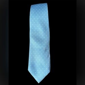 Elevate your wardrobe with the Vintage Polo Ralph Lauren Hand Made Silk Tie, showcasing a sophisticated blue color with a distinctive silver polka dot pattern. Crafted from premium silk fabric, this classic-width tie delivers a timeless elegance perfect for any occasion.