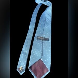 Vintage Polo Ralph Lauren Hand Made Silk Tie Blue / Silver Polka Dot