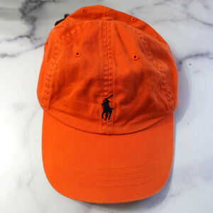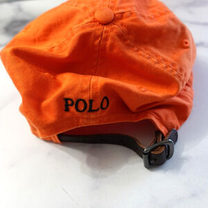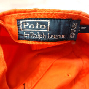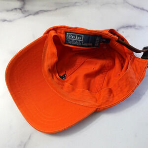 Vintage Polo Ralph Lauren Hat Cap Orange One Size Pony Leather Strap Preppy 90s