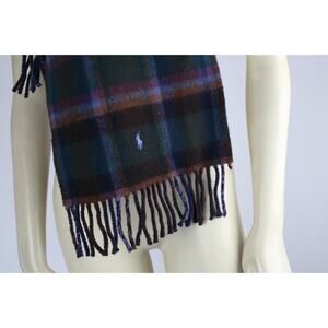 Vintage Polo Ralph Lauren Lambswool Plaid Fringe Shawl Wrap Scarf Luxury Classic