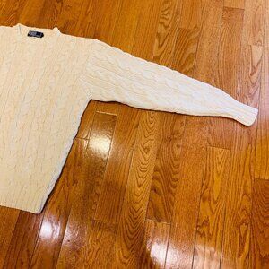 Vintage Polo Ralph Lauren Linen Blend Chunky Cable Knit Sweater Size Large Ivory