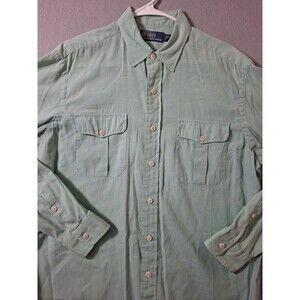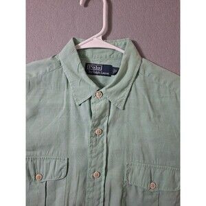 Vintage Polo Ralph Lauren Linen Blend Shirt Men Large Green Seafoam Roll Tab