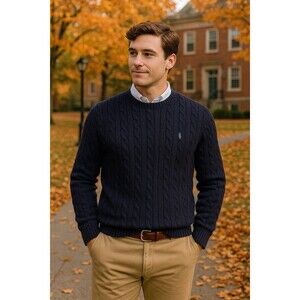 Vintage Polo Ralph Lauren Men’s Preppy Ivy League Cable Knit Sweater Timeless Lg
