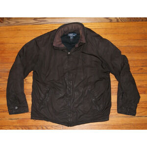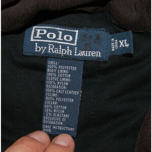 Vintage Polo Ralph Lauren Mens XL Brown Puffer Bomber Coat Calf Leather Trim