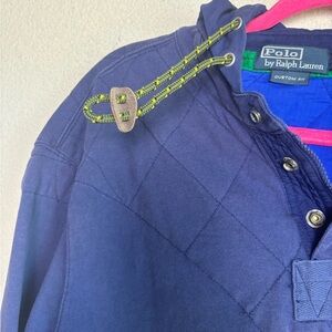 Vintage Polo Ralph Lauren Navy & Yellow Quilted Hooded Rugby Pullover XL