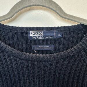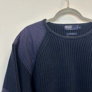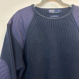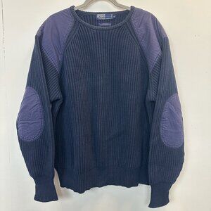 Vintage Polo Ralph Lauren PRL Cotton English Rib Knit Patch Sweater Navy XL