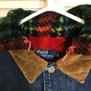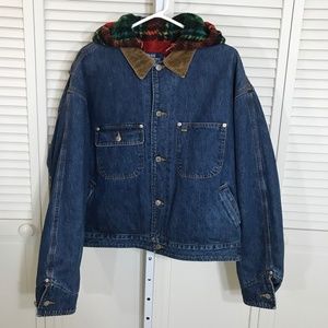 Vintage Polo Ralph Lauren Plaid Fleeced Hoodie Denim Trucker Jacket XL