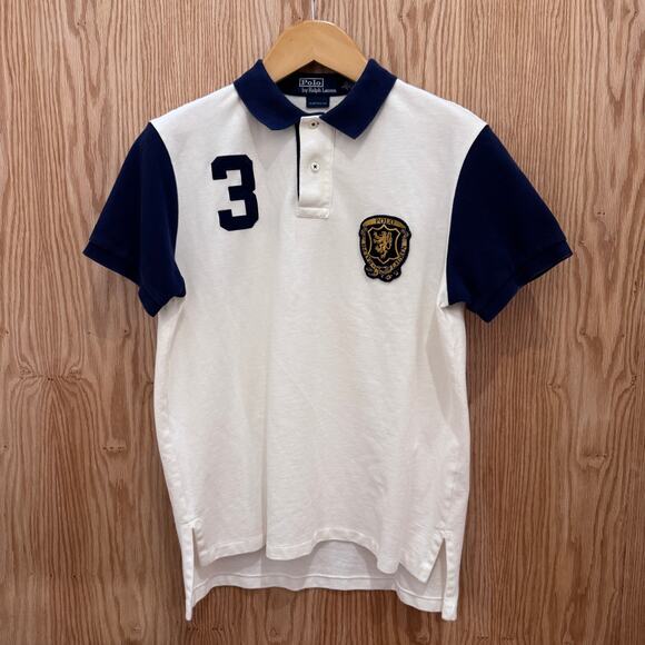 Vintage Polo Ralph Lauren Polo Shirt Short Sleeve White Navy 3 Badge Men's L