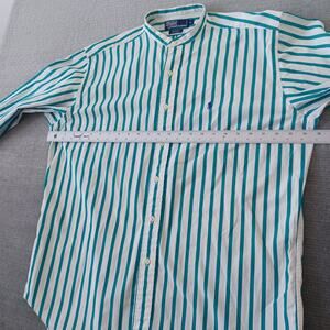 Vintage Polo Ralph Lauren Postboy Band Collar Shirt Men M Green Stripe Button Up