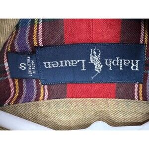 Please see all images for best item description. Great vintage tartan plaid Polo Ralph Lauren shirt size small, 100% cotton. Measures 22 flat across pit to pit, and 31.5 collar to bottom. Any questions please ask!