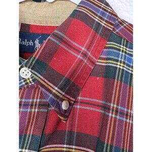 Vintage Polo Ralph Lauren Red Green Plaid Tartan Plaid Button Down Shirt Small