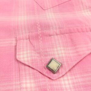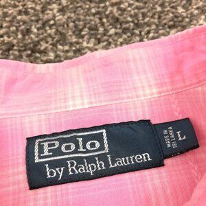 Vintage Polo Ralph Lauren Shirt Western Pearl Snap Button Plaid Pink Mens Large