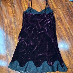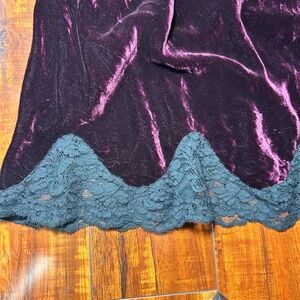 Vintage Polo Ralph Lauren Silk Maroon Purple Velvet Night Dress Slip Lace