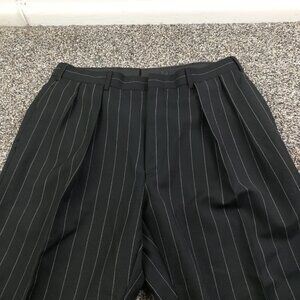 Pants are pleated, cuffed, and have suspender buttons. 2.5" to let out at the waist, 4" to let out at the inseam. Inseam measured to be 28.5".
