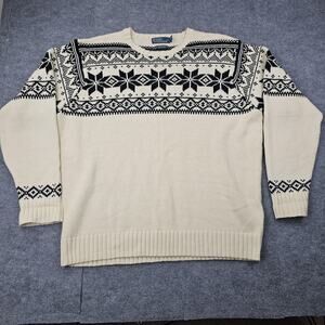 Vintage Polo Ralph Lauren Sweater Mens 3XLT Ivory Fair Isle Cashmere Angora Cozy
