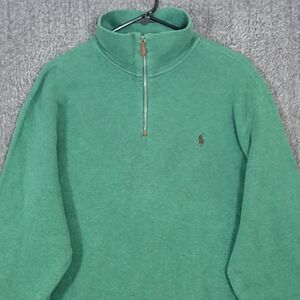 Vintage Polo Ralph Lauren Sweater Mens XXL Green 100% Cotton 1/4 Zip Mock Neck.