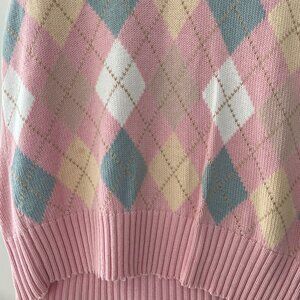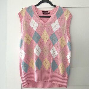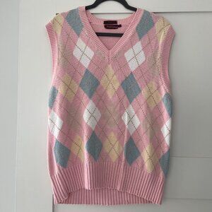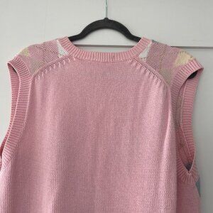 In great condition but please note small stain in photos. Hard to notice amidst the pattern unless you look for it. This is a heavyweight, well-made, high quality sweater vest. So cute on its own during the summer or layered over a turtleneck in the winter. They don't make them this good anymore - this is a great find.