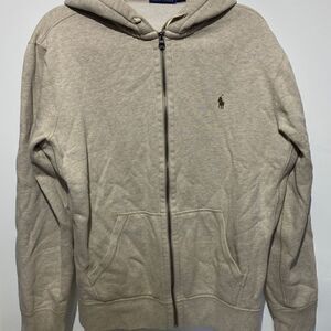 Vintage Polo ralph lauren logo hoodies sweater jacket designer streetwear men full zipper sweatshirt tan pullover size large