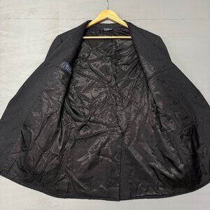 black blazer, striped suit jacket, 90s fashion, made in USA, preppy style, single breasted, classic fit, vintage menswear, formal blazer, designer inspired