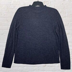 Vintage 90's Polo Ralph Lauren Women's Size Large 100% Wool Mock Neck Sweater. A classic 90's Y2K style lightweight and made out of 100% wool, subtle navy and grey horizontal stripes with a mock neckline.